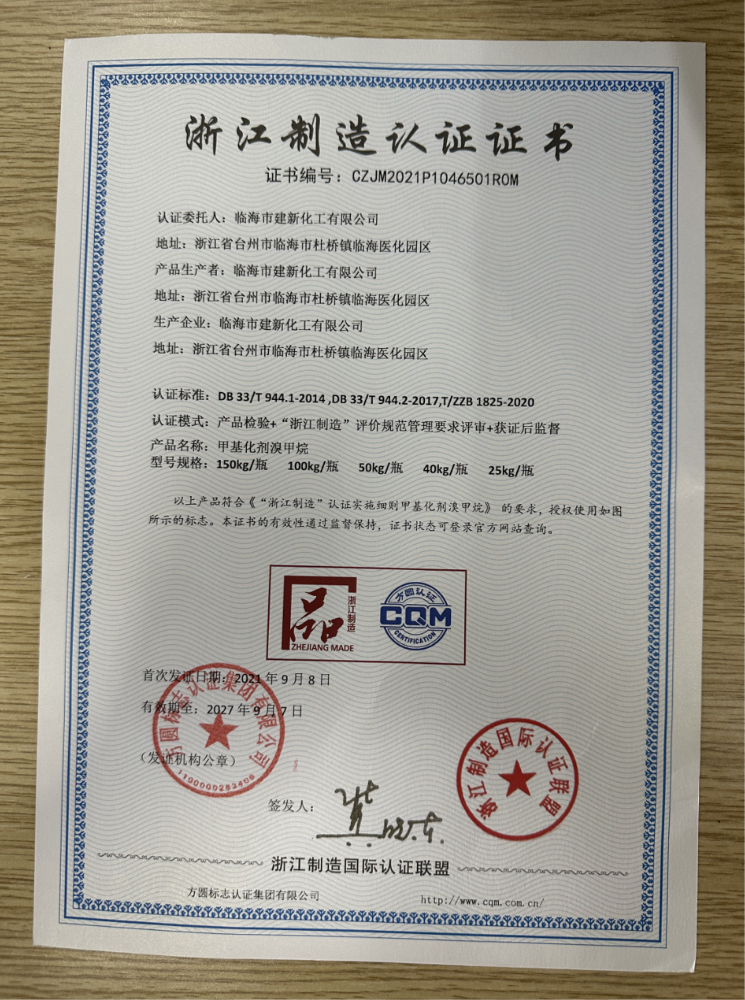 浙江制造認證證書(shū)