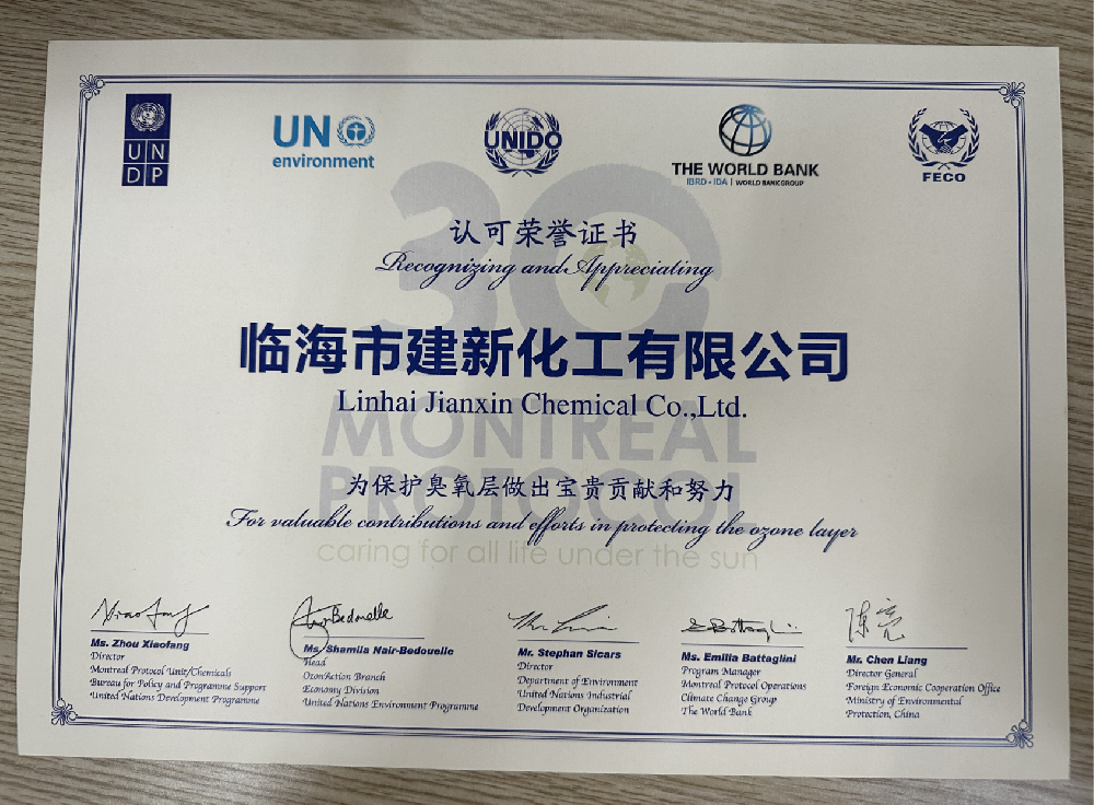 聯(lián)合國證書(shū):為保護臭氧層做出寶貴貢獻和努力